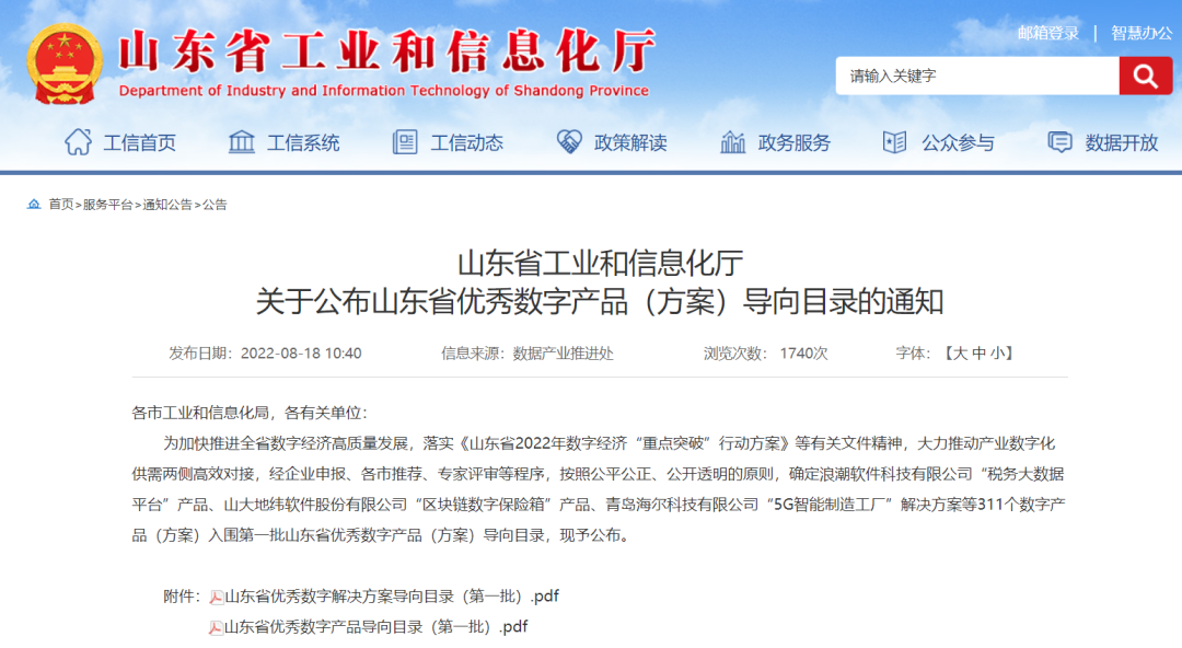 為加快推進(jìn)全省數(shù)字經(jīng)濟(jì)高質(zhì)量發(fā)展,落實(shí)《山東省2022年數(shù)字經(jīng)濟(jì)“重點(diǎn)突破”行動方案》等有關(guān)文件精神,大力推動產(chǎn)業(yè)數(shù)字化供需兩側(cè)高效對接,今年4月省工業(yè)和信息化廳組織開展了山東省優(yōu)秀數(shù)字產(chǎn)品(方案)征集申報(bào)工作。