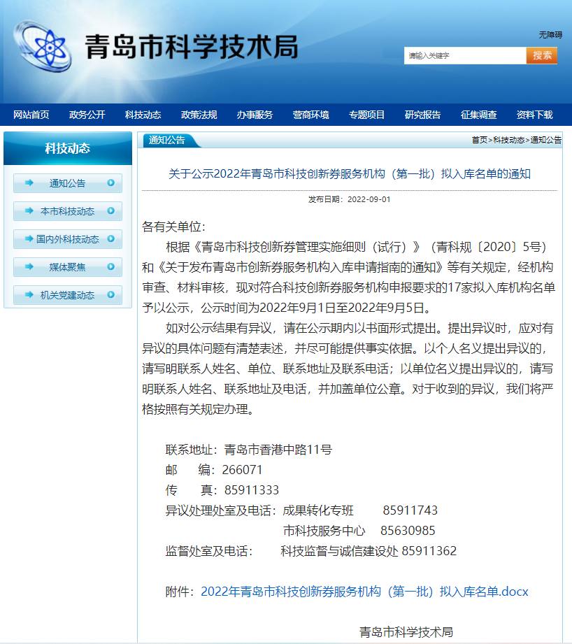 三、入圍“2022年青島市科技創(chuàng)新券服務(wù)機(jī)構(gòu)(第一批)擬入庫名單”